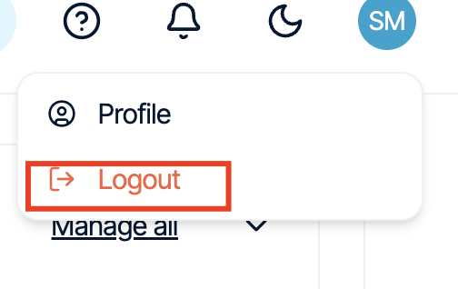 - In the Hosting Panel, click the top-right icon, and then click Logout: