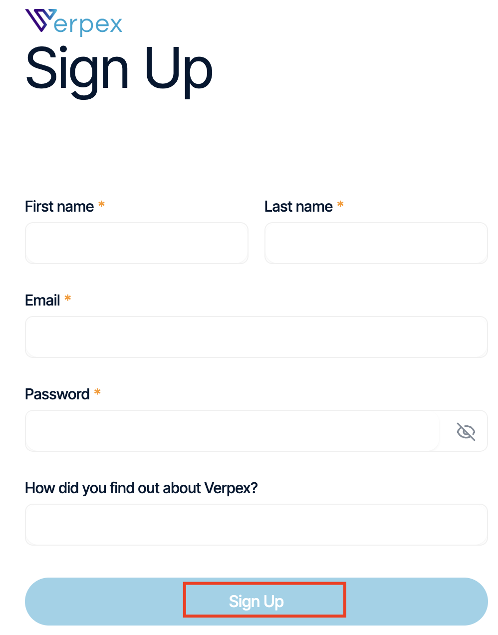 - Complete the fields, and then click Sign Up:
