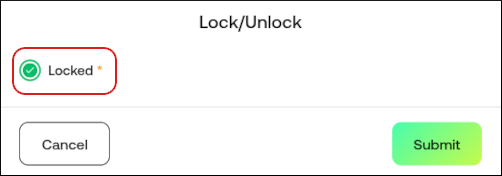 In the Lock/Unlock dialog box, the lock options for the domain appear: