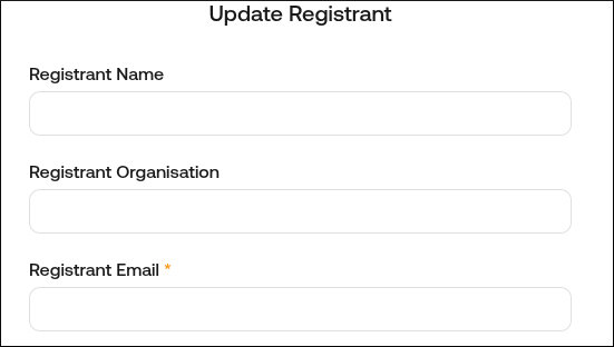 - In the Update Registrant dialog box, update the domain registrant contact information: