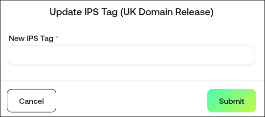 - In the New IPS Tag text box, type the IPS tag provided by the gaining registrar: