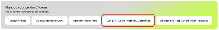 If you want to transfer your domain to another registrar, you must obtain an EPP (Extensible Provisioning Protocol) code first. The EPP code is an additional security measure that helps prevent unauthorized domain transfers.