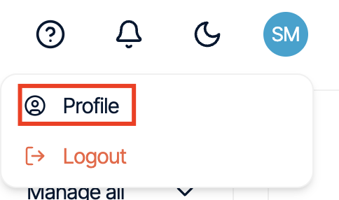 - Click your initials in the top-right corner, and then click Profile: