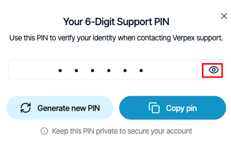 - To view your support PIN, click the eye icon: