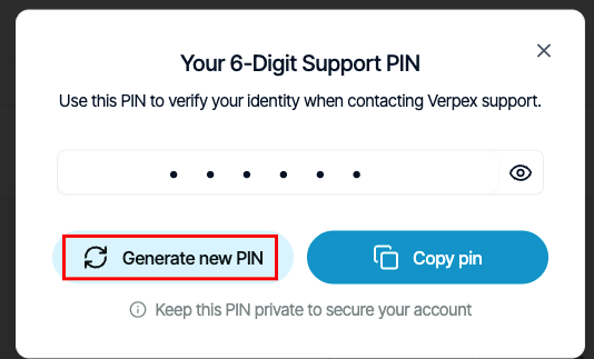 We may use the support PIN in phone calls, online chats, tickets, or any time we need to confirm your identity.